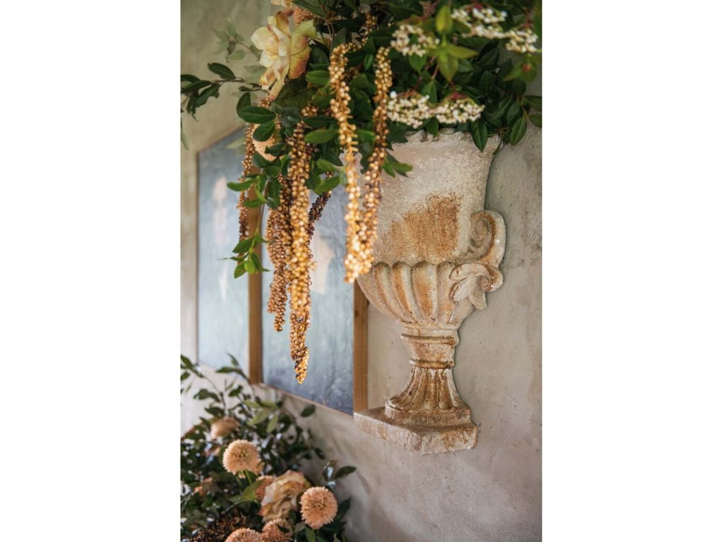 Bringen Sie einen Hauch von romantischer Eleganz in Ihr Interieur mit diesemwand polvaza by Blanc Mariclodie als Relikt historischer italienischer Villen fungiert. Mit der Höhe54 cm und eine detailreiche Patina machen ihn zu einem idealen Dekorationselement für die Wand - er belebt sanft einen Flur, ein Wohnzimmer oder eine Gartenlaube im Stil der Provence oder des Shabby Chic.