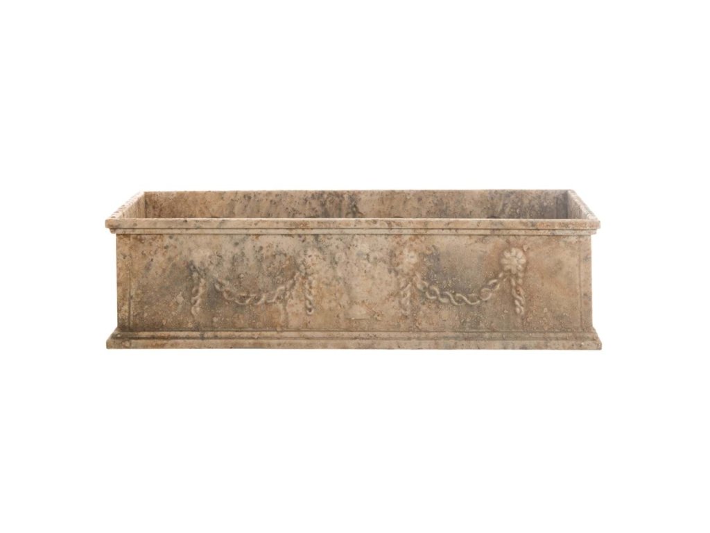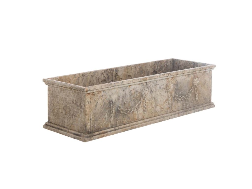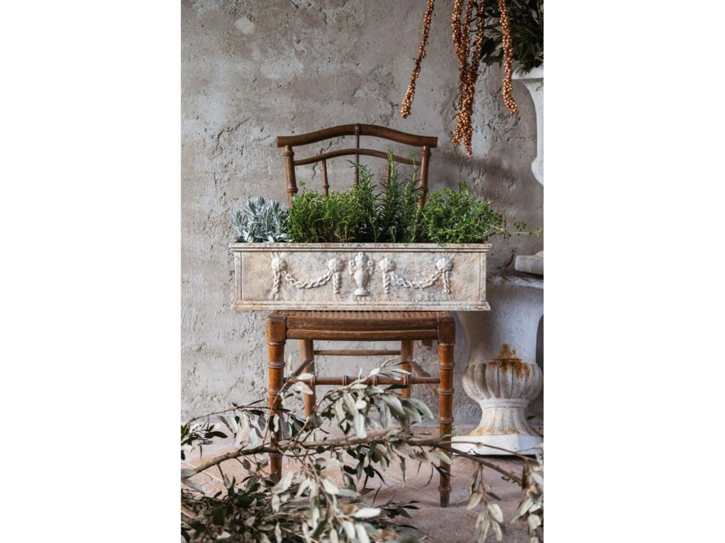 Verleihen Sie Ihrem Innen- oder Außenbereich einen Hauch von französisch-rustikalem Charme mit diesemrechteckiger Blumentopf aus Metall von der renommierten italienischen MarkeBlanc Mariclo. Mit der Breite60 cm ist geräumig genug, um verschiedene Arten von Blumen, Kräutern oder Dekorationsobjekten zu arrangieren - und wirkt dabei mit seinem Vintage-Design wie ein authentisches Element eines historischen Gartens oder einer romantischen Terrasse.