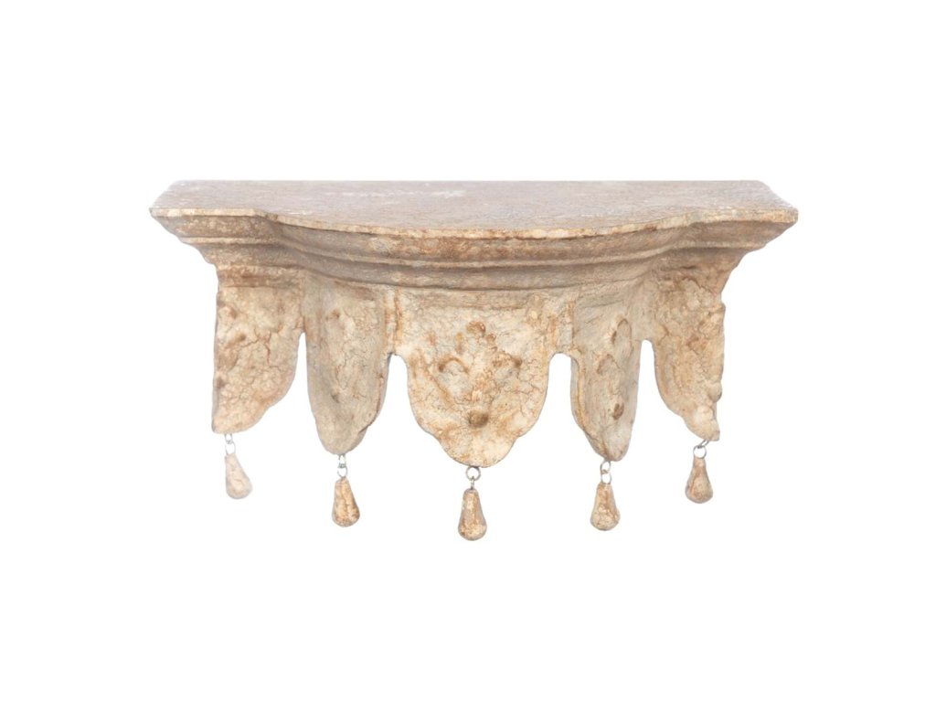 Bringen Sie den Charme der französischen Landschaft und die Eleganz der alten Zeiten in Ihr Interieur mit diesemdekoratives antikes regal von Blanc Mariclo. Sein reiches Design mit patinierter Oberfläche erinnert an Möbel aus historischen Villen - ideal für Stile wie Vintage, Shabby Chic oder rustikale Romantik.