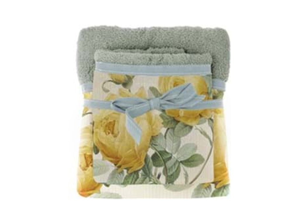 Handtuchset aus Baumwolle mit Rosenmotiv - Blanc Mariclò