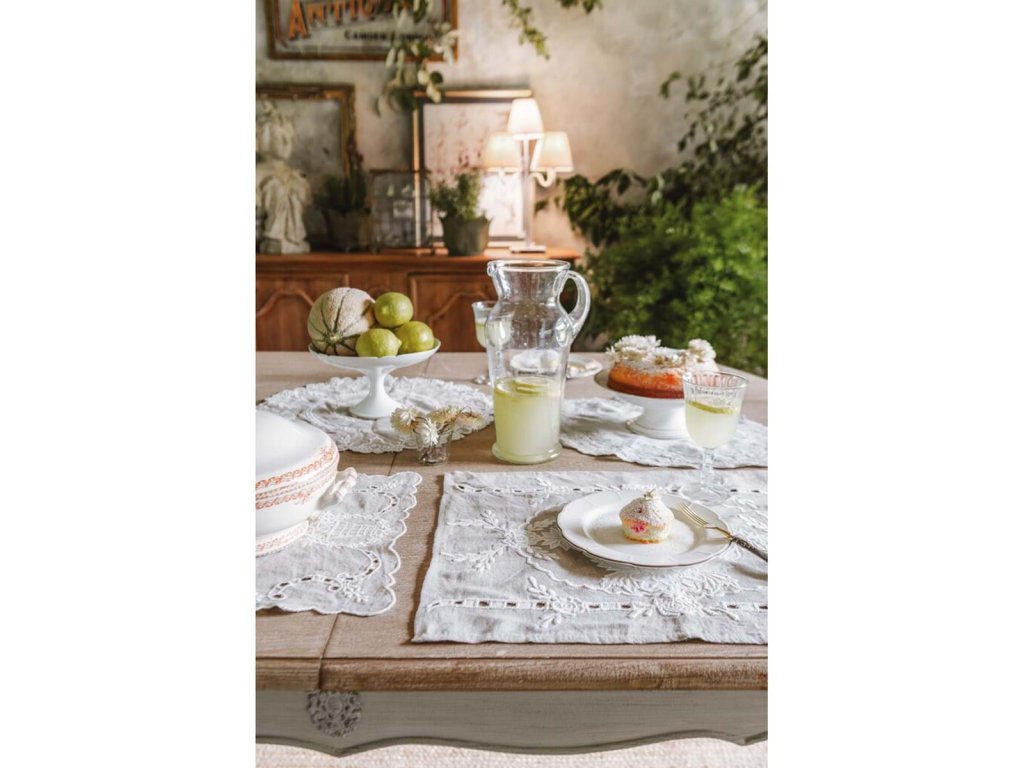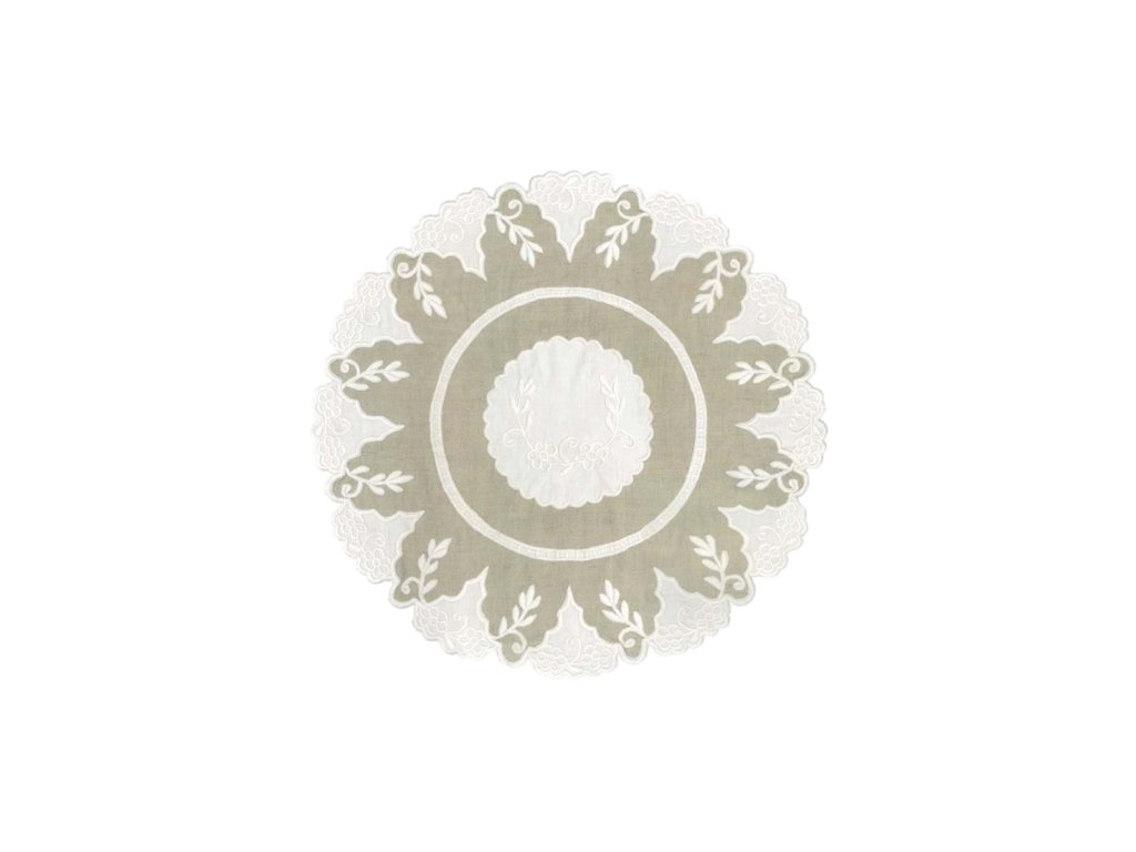 Die bestickte runde Tischdecke ist ein elegantes und romantisches Tischaccessoire, das Zartheit und einen zeitlosen Vintage-Look auf den Tisch bringt. Die präzise Stickerei und die dekorativen Details passen wunderbar zum Shabby Chic, zum Landhausstil und zum provenzalischen Stil.