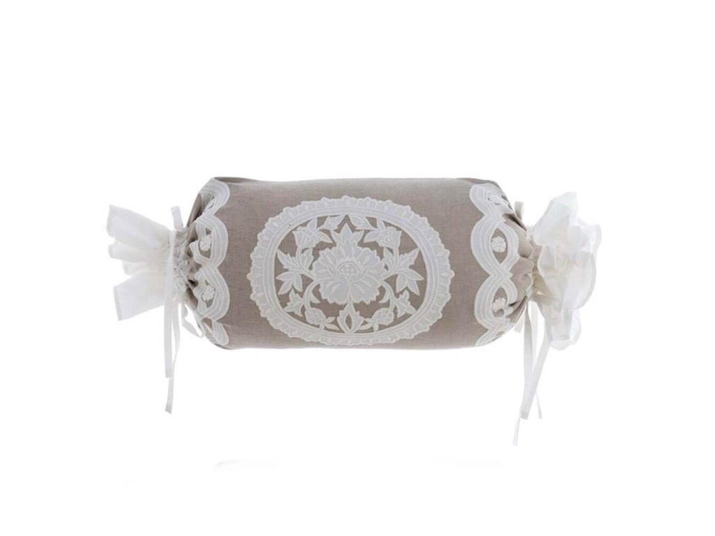 Besticktes Kissen in Form eines Zylinders - Kollektion Sangallo, Blanc Mariclò