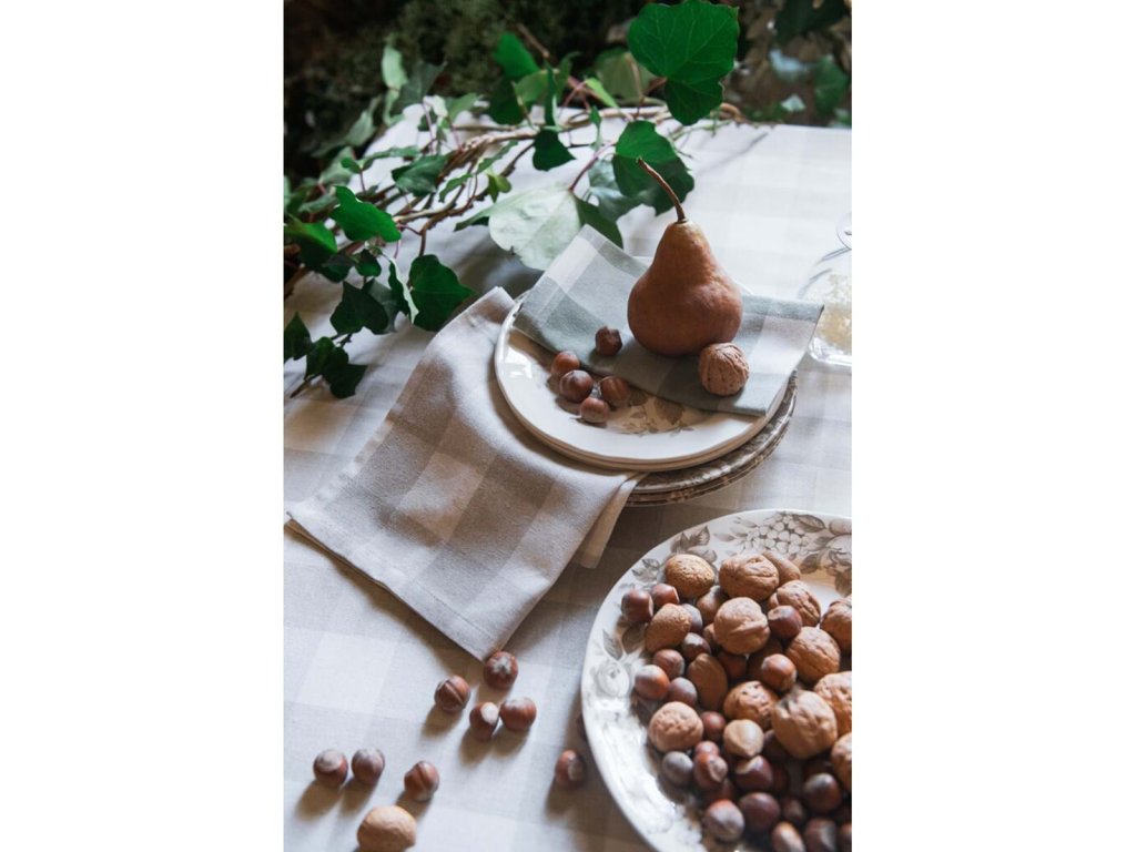 Beige und weiß karierte Serviette - Kollektion Bolgheri, Blanc MariClo", 40×40 cm.