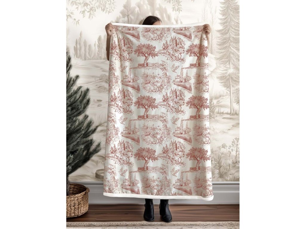 Hüllen Sie sich in Komfort und Eleganz mit dem schöneneine beidseitig bedruckte Decke von der italienischen MarkeBlanc MariClo'. Hergestellt aus100% Polyesterist extremweich im Griff, leicht und warm. Vrosa-weiße Farbkombination mit romantischennach dem Vorbild des Toile de Jouy sieht luxuriös und gemütlich zugleich aus. Die Decke ist praktischverpackt in einem eleganten Textilbeutelideal zum Verschenken oder Aufbewahren.