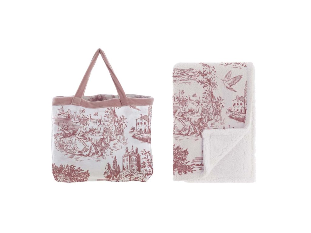 UmkehrbarfeindeckemitvonToiledeJouy-BlancMariClo',rosa und weiß,140×170cm,In tasche.