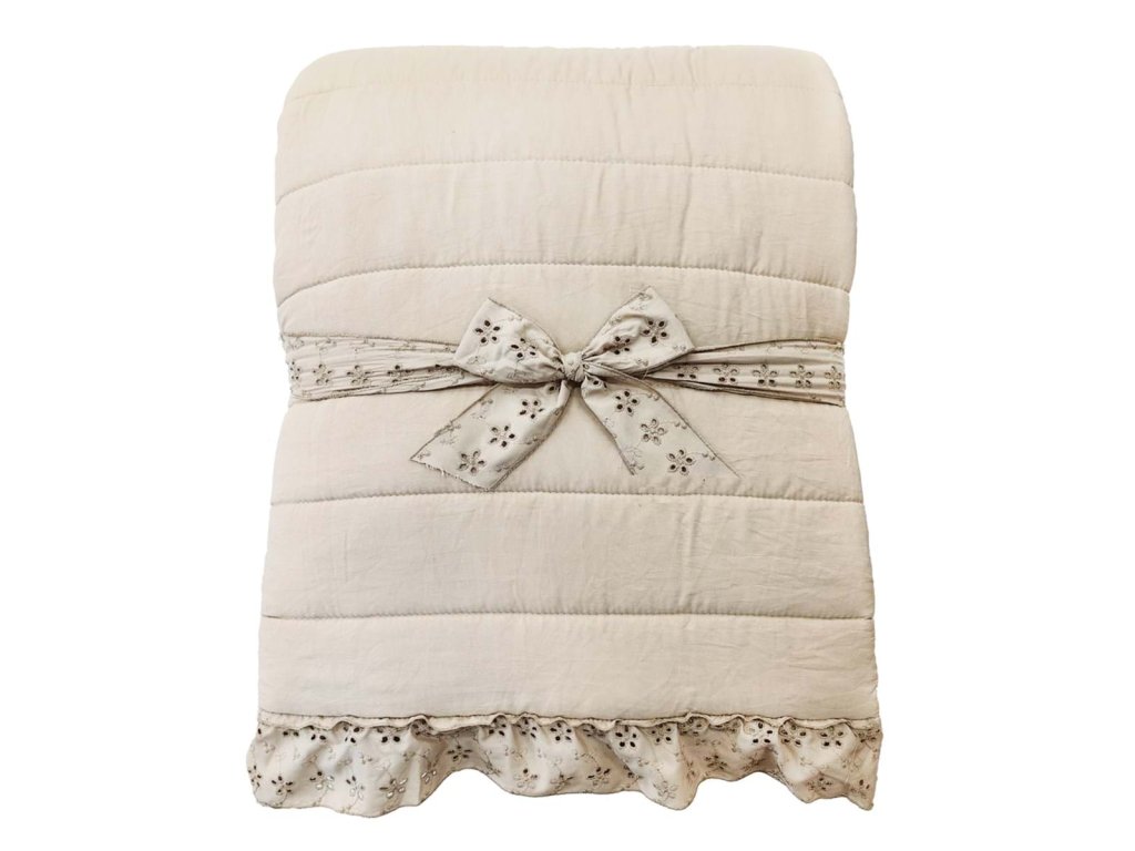 Luxusdicke Decke mit Füllung von Geldbußenmikrofasern in elegantcremefarbe ist eine perfekte Ergänzung für eine romantische oder provenzalische Einrichtung. Gestepptes Design unddekorative Madeira-Spitze verleihen dem Quilt Charme und zeitlose Eleganz. Abmessung220 × 260 cm bietet eine bequeme Abdeckung auch für ein großes Bett.