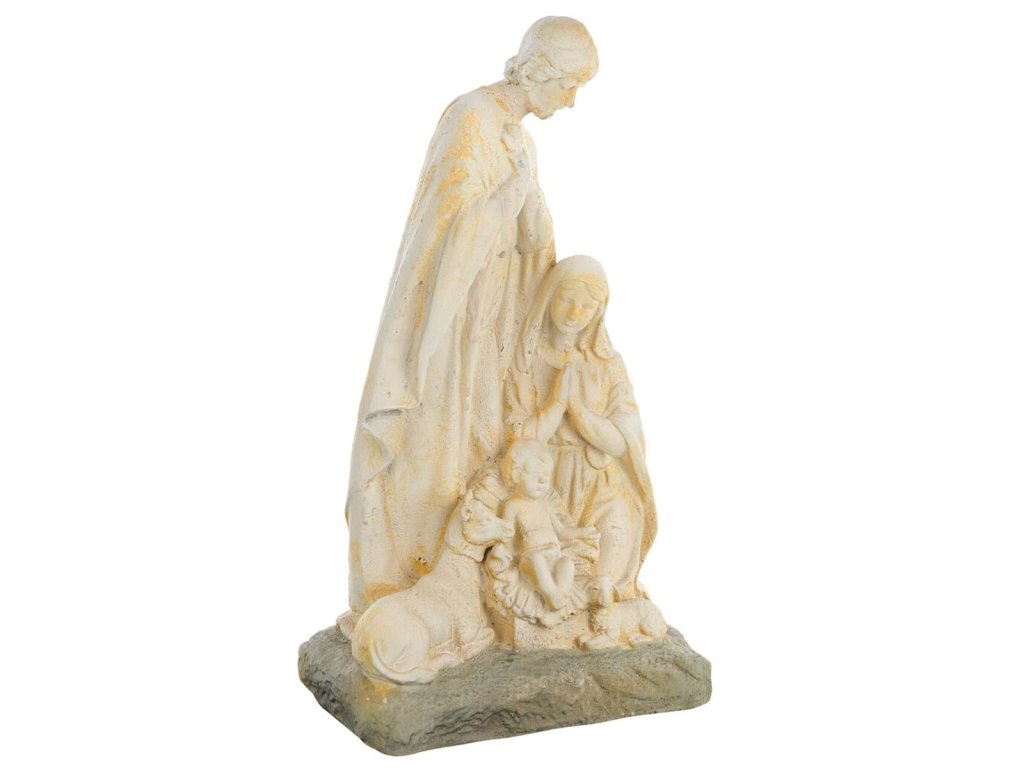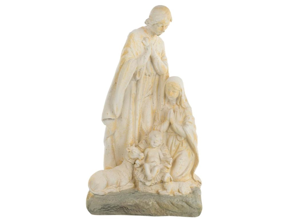 Schaffen Sie eine Atmosphäre des Friedens und der spirituellen Tiefe in Ihrem Zuhause mit der schönen Krippendekoration von Blanc Mariclo. Diese Skulptur aus Polyresin zeigt Josef, Maria, das Jesuskind und ein Schaf in einer weichen Patina, die den Charme der alten Welt und weihnachtliche Gemütlichkeit ausstrahlt.
