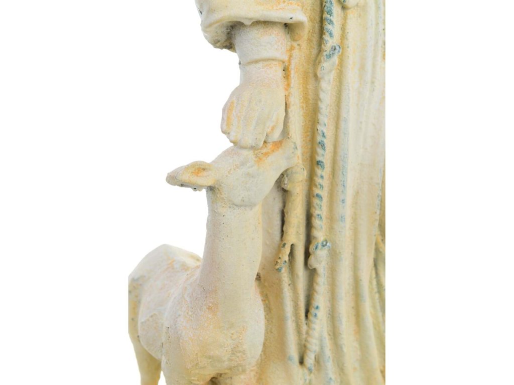 Bringen Sie Frieden, Mitgefühl und natürliche Harmonie in Ihr Zuhause mit der dekorativen Statue des Heiligen Franz von Assisi von der italienischen Marke Blanc Mariclo. Diese detaillierte Polyresin-Skulptur stellt den Schutzpatron der Tiere umgeben von Waldtieren dar und drückt damit seine tiefe Beziehung zur Natur aus