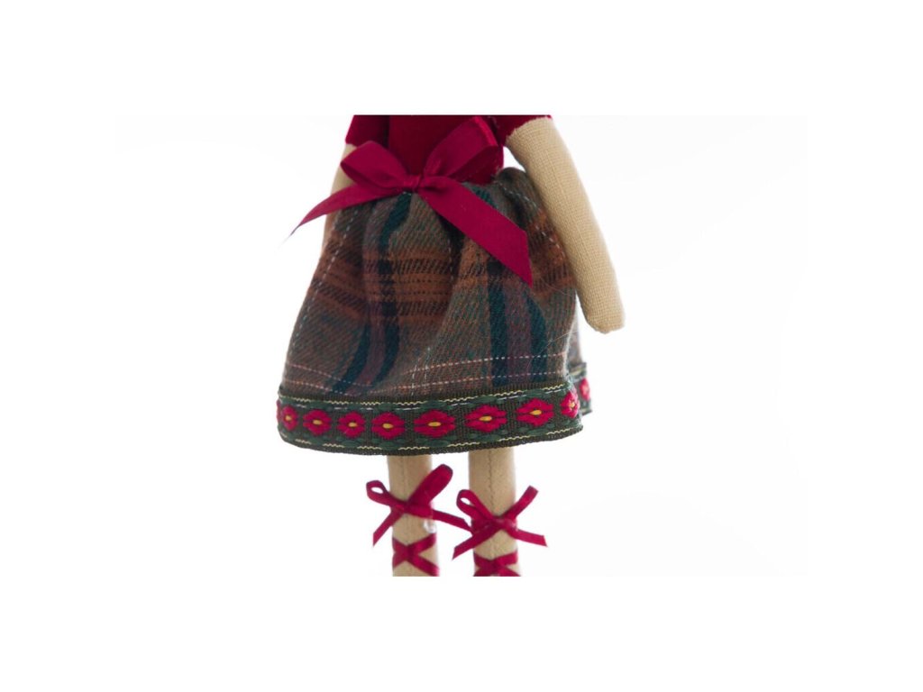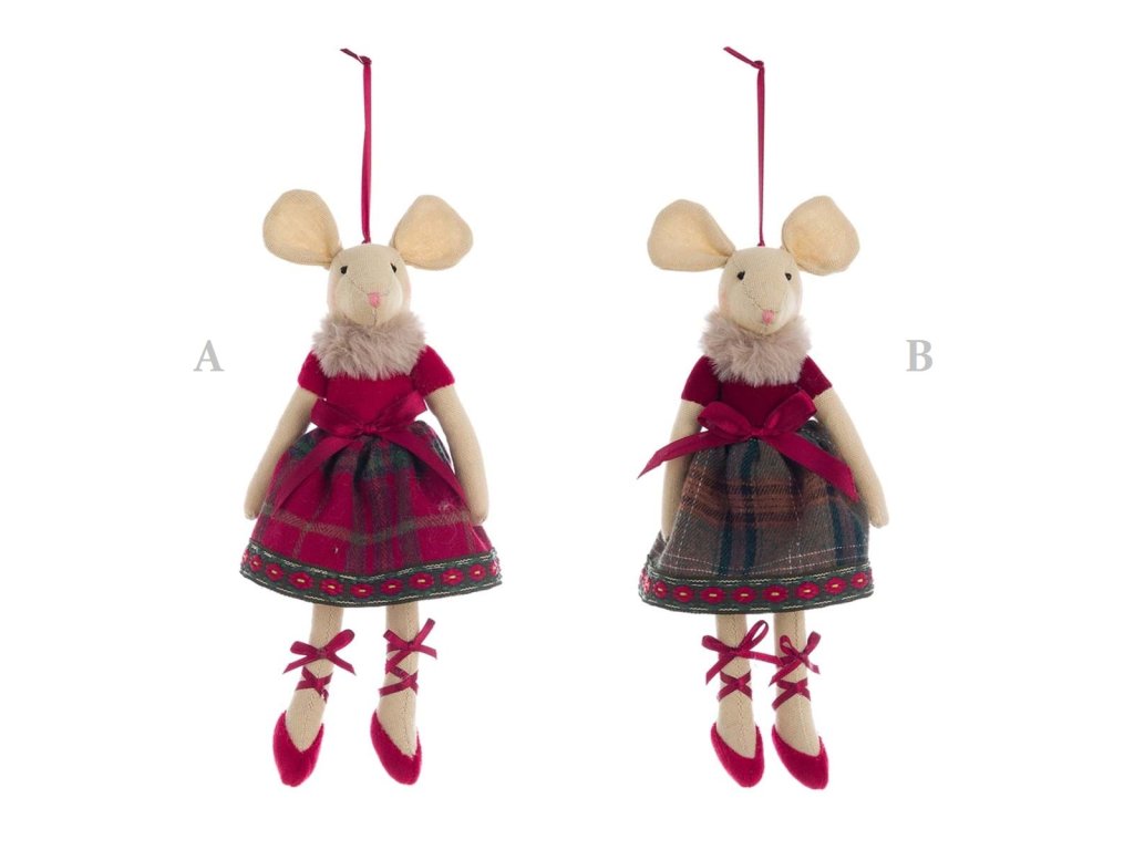 Weihnachtliche Dekofigur einer Maus in einem karierten Rock des toskanischen Herstellers Blanc Mariclò.