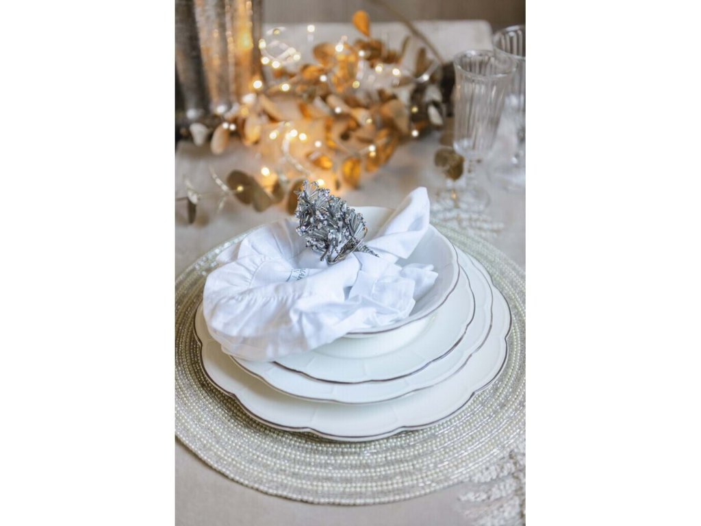 Dekorativer Serviettenring mit gestickten Perlen des toskanischen Herstellers Blanc Mariclò.