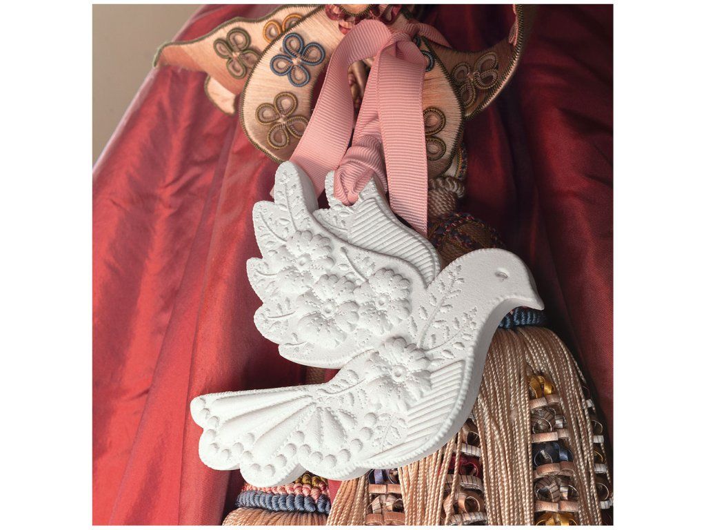 Diese vollständig von Hand gefertigte Gipstaube, die von der provenzalischen Boutique inspiriert ist, wird lange Zeit alle kleinen Räume Ihres Hauses wie Schränke, Schubladen oder Gepäckstücke schmücken. In einer Tasse auf dem Tisch platziert, verwandelt sie sich in ein echtes dekoratives Schmuckstück.