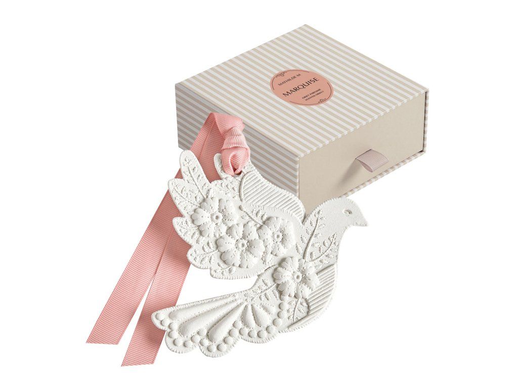 Das Wahrzeichen der Marke sind die Mathilde M Gipsdekorationen, die zart duftend sind und in unseren Werkstätten von unserem Dekorationsbildhauer handwerklich hergestellt werden.