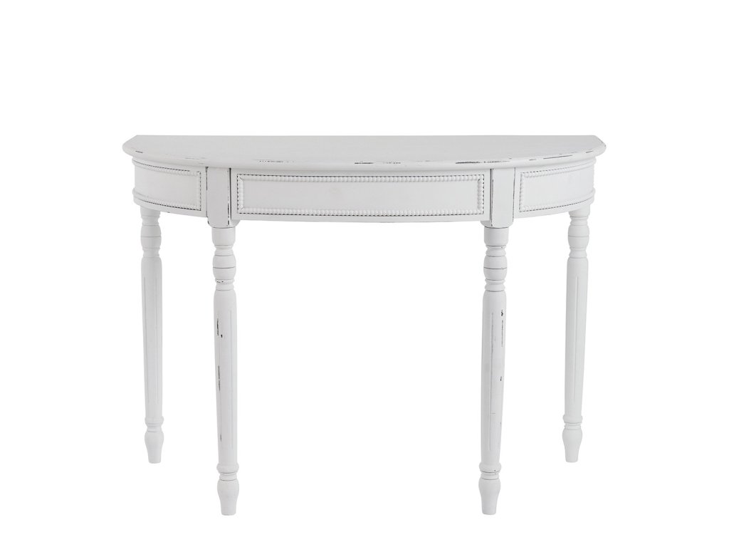Der weiße Konsolentisch Elisabeth ist ideal für das Wohnzimmer oder den Eingangsbereich und findet in jedem Raum des Hauses seinen Platz. Seine sorgfältig von Hand geschnitzten Details verleihen ihm einen einzigartigen Stil, und der Patina-Effekt bringt Charakter und Stil in Ihre Einrichtung. Ein Original aus der französischen Werkstatt Mathilde-M.