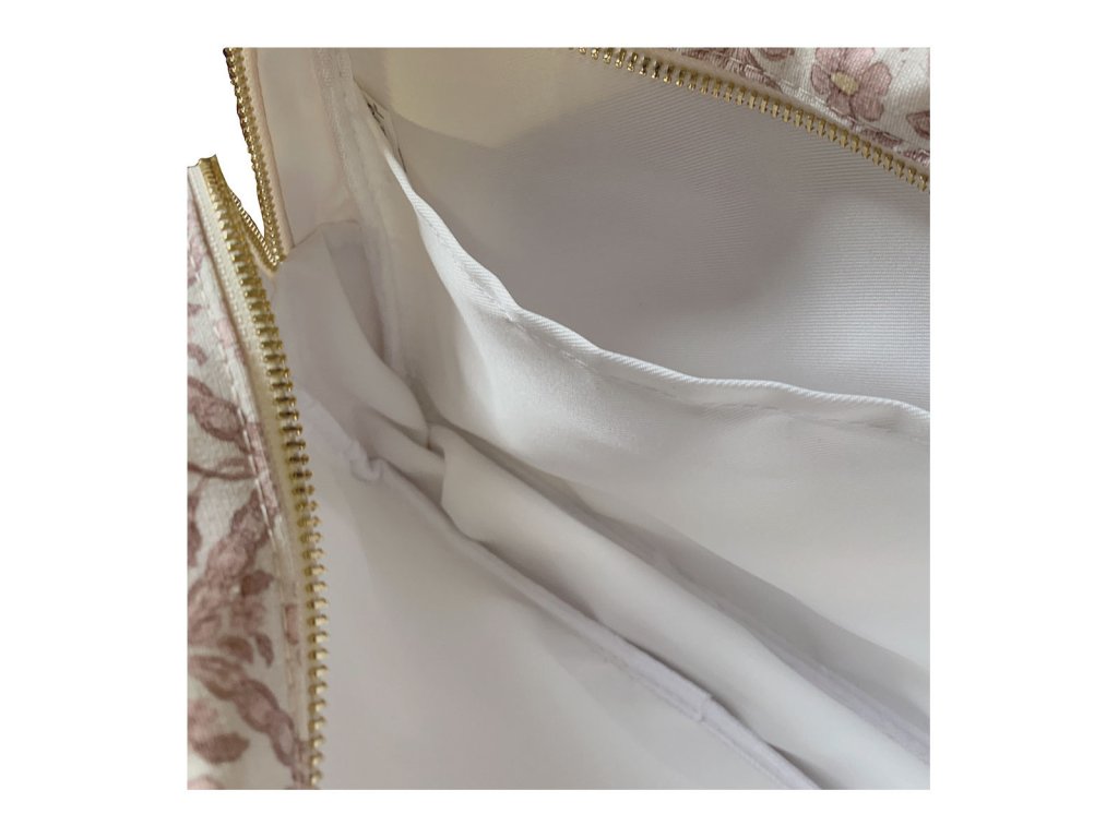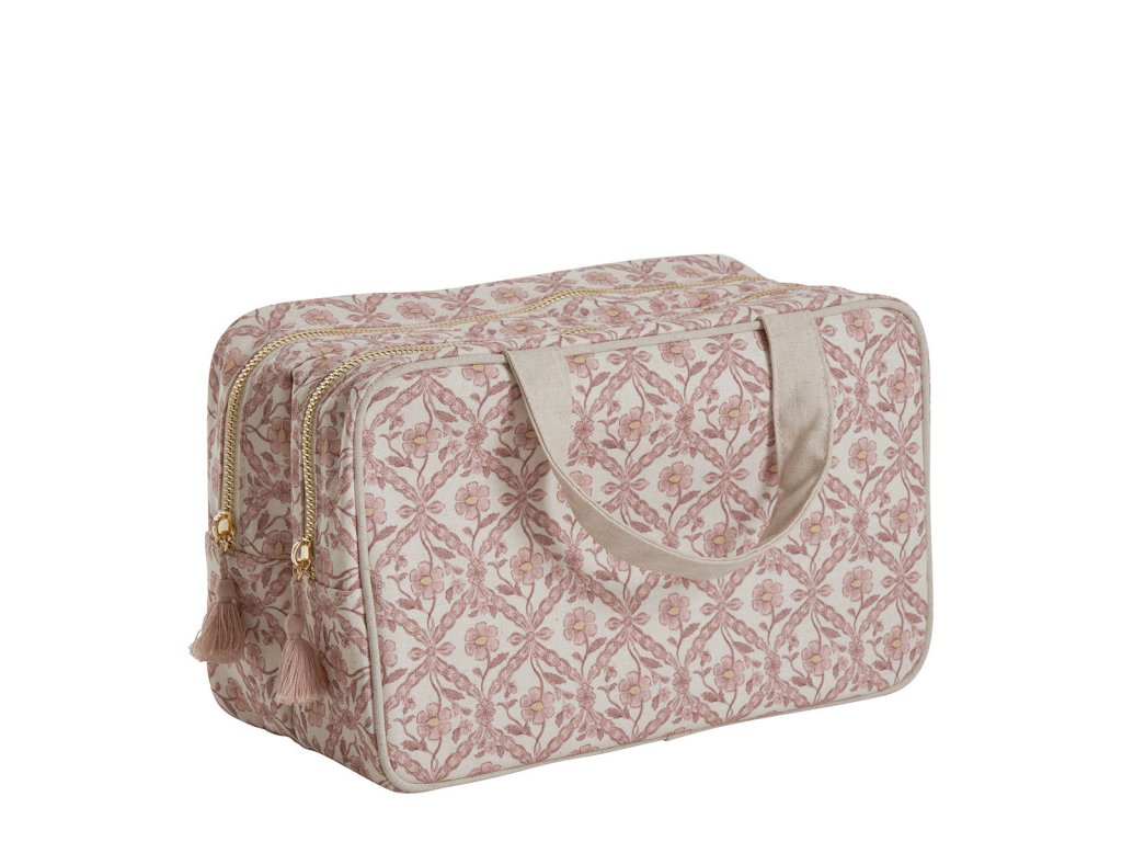 Die praktische und feminine Entrelacs Fleuri große Doppelkosmetiktasche bietet ein großzügiges Format, das ideal ist, um alle Ihre Schönheitsprodukte und Accessoires zu verstauen und überallhin mitzunehmen. Sie wird Sie mit ihrem raffinierten, von indischen Drucken inspirierten Dekor verführen und schnell zu einem Must-Have für alle Ihre Reisen werden.