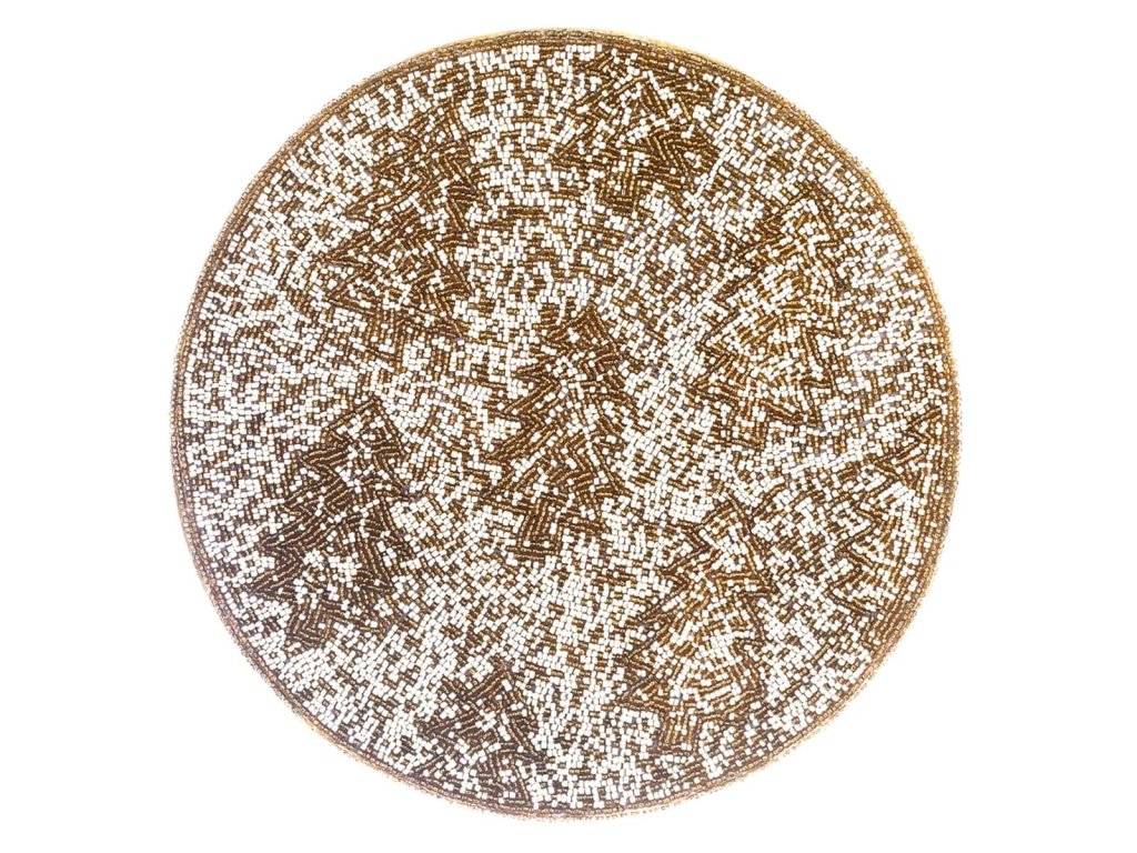 Festliche runde Tischdecke Blanc Mariclo - 36 × 36 cm, gold und weiß gestickte Perlen, Kollektion Dora