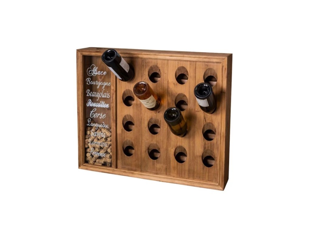 Stilvolles Weinflaschenregal aus Holz mit Korkenablage. Möglichkeit zu hängen oder zu stehen. Preis für Schrank ohne Flaschen. Anzahl der Flaschen im Regal 16.
