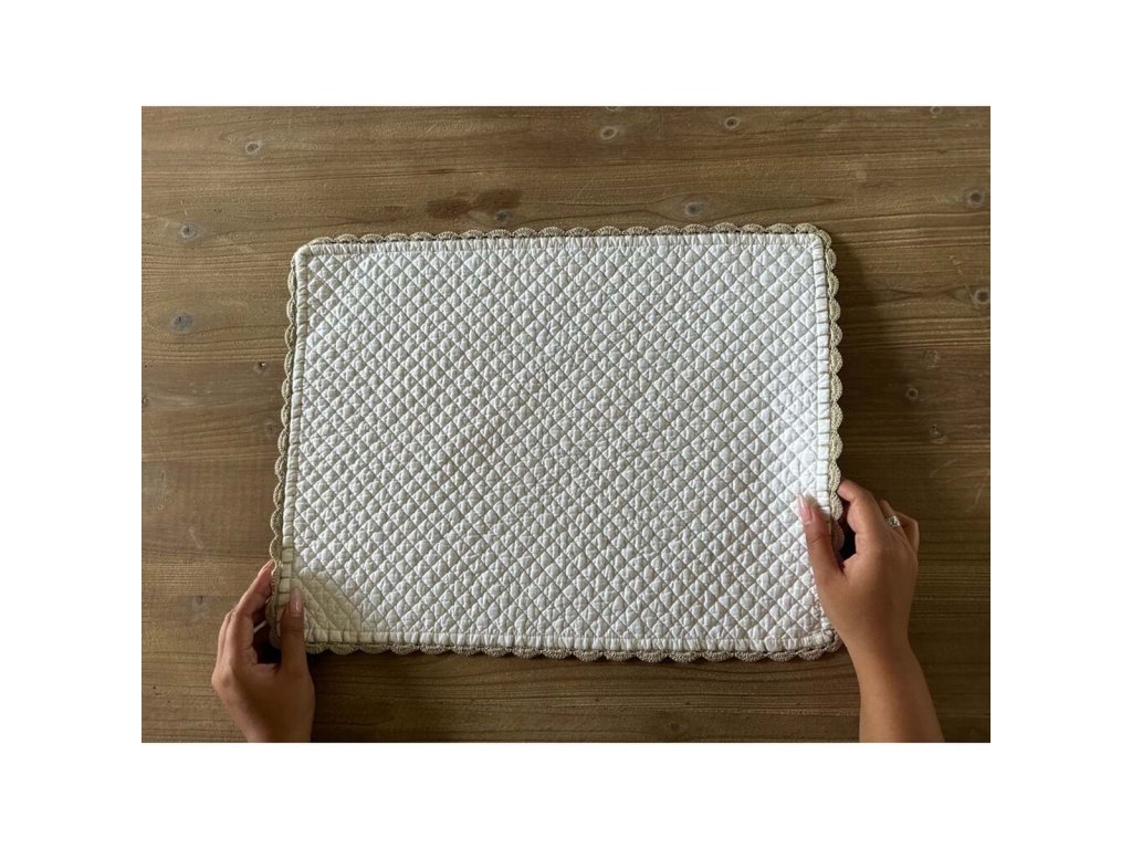 Bringen Sie Eleganz und Textur in Ihr Esserlebnis mit Qualitätgesteppte Tischsets von der italienischen MarkeBlanc MariClo'. Hergestellt aus100% Baumwollehat die Tagesdeckegröbere Struktur für längere Haltbarkeit und ein luxuriöses Aussehen.Gefranste Kante verleiht dem Stoff ein ordentliches und stilvolles Detail, währendbeige Farbe handelt sanft und universell.