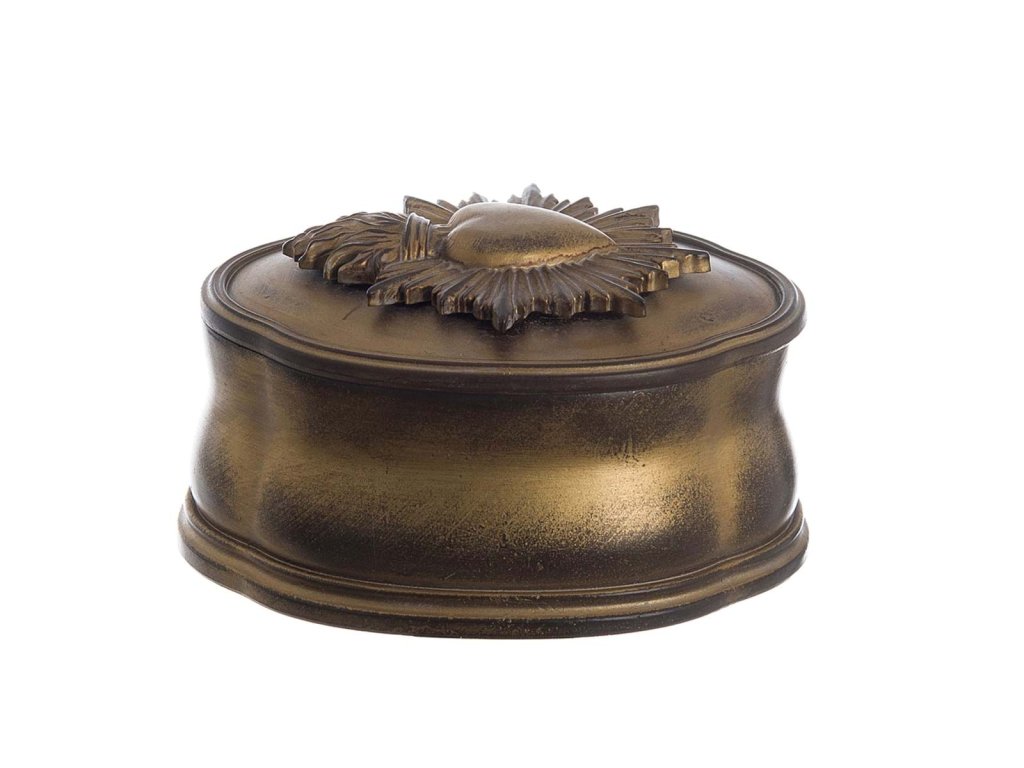 Entdecken Sie den Charme von antikem Design mit der eleganten Votivvase der italienischen Marke Blanc MariClo'. Das dekorative Gefäß in Goldbraun wirkt wie ein Relikt aus der Vergangenheit - mit einer zarten Patina, einer detaillierten Verarbeitung und einem herzförmigen Deckel, der einen romantischen und spirituellen Touch verleiht.