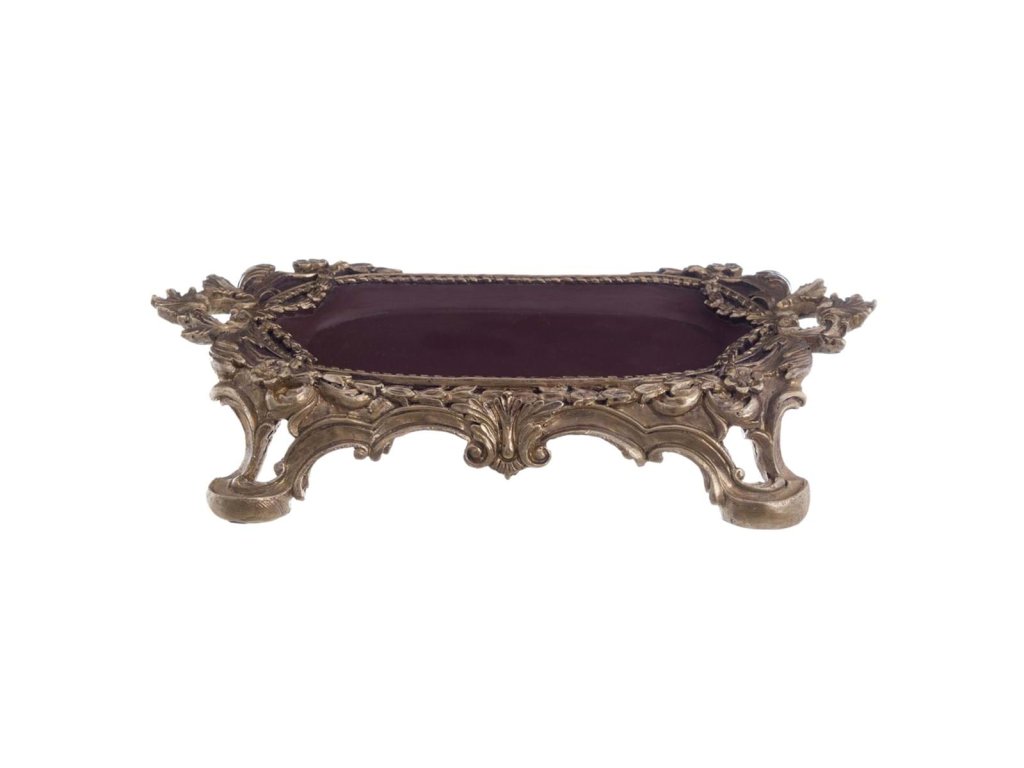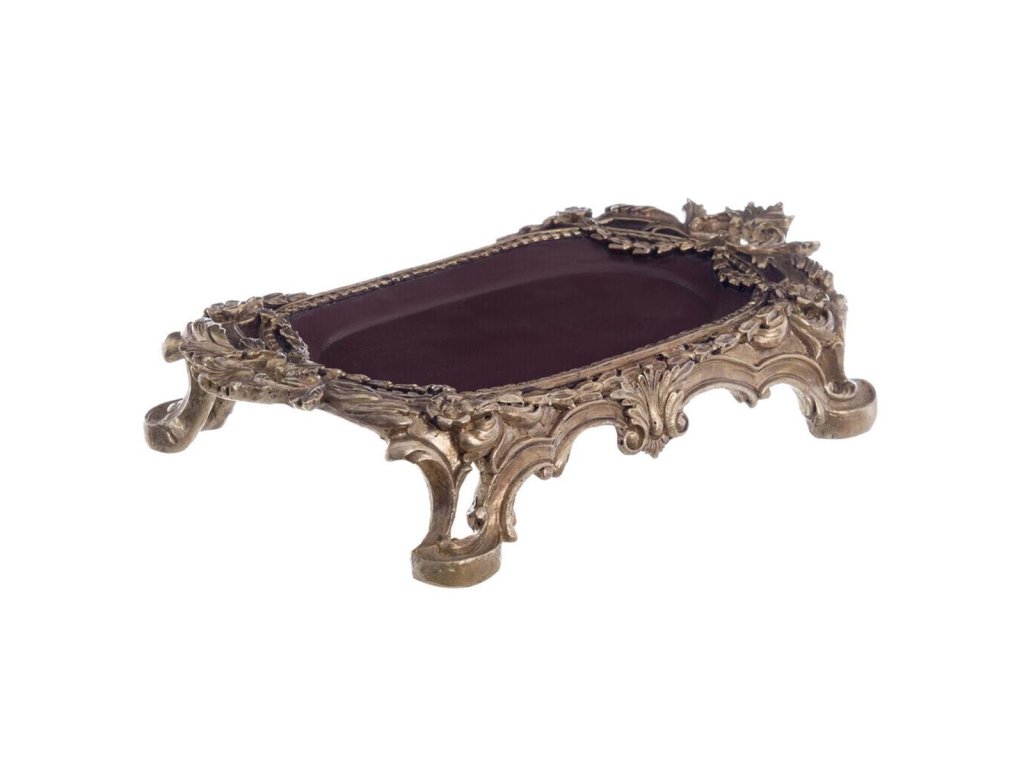 Einzigartiges burgunderrotes Tablett aus goldenem Polyresin.
