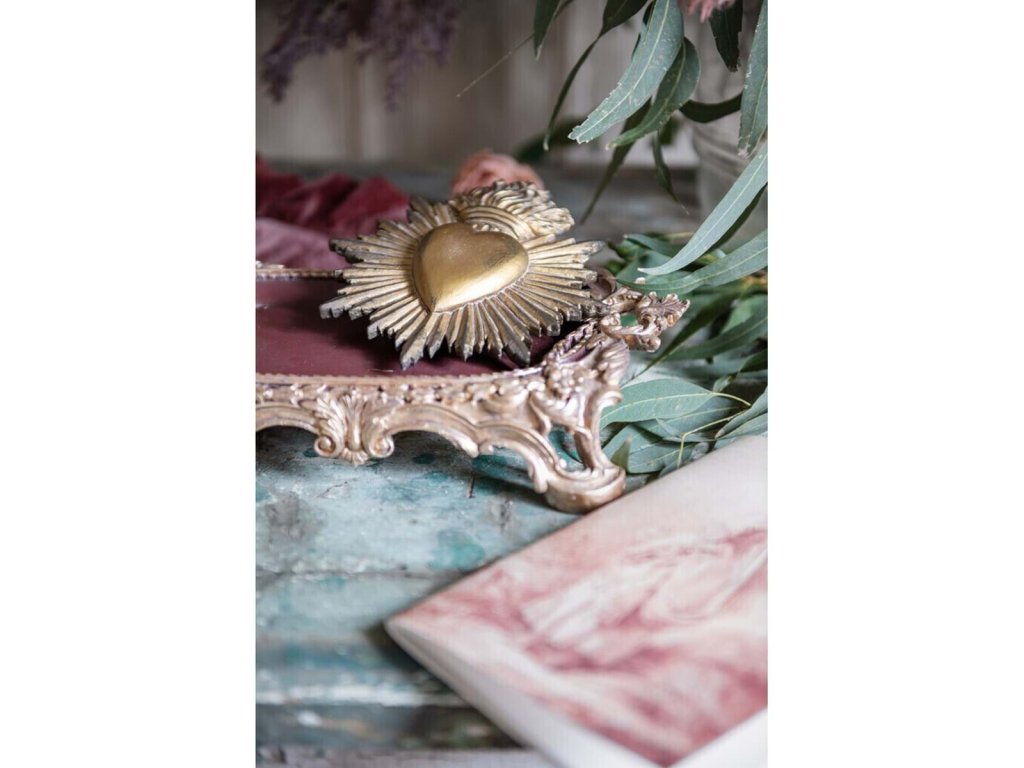Einzigartiges weinrotes Tablett aus goldenem Polyresin. Original von der italienischen Firma Blanc Maricló.