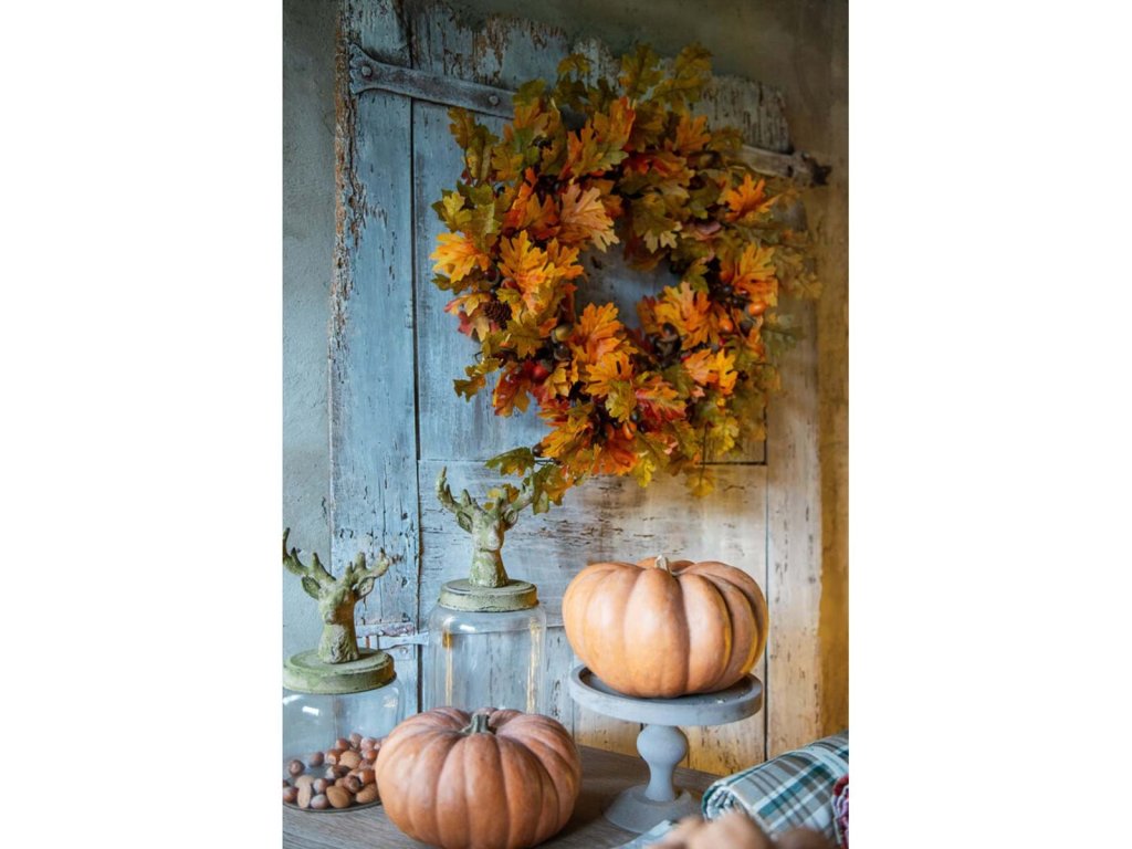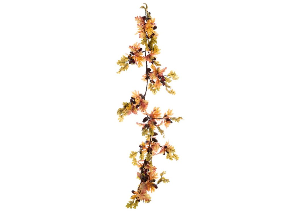 Bringen Sie die Atmosphäre eines Herbstwaldes in Ihr Interieur mit einer wunderschönen Blättergirlande der italienischen Marke Blanc MariClo'. Diese dekorative Girlande mit einer Länge von 182 cm ist reich verziert mit Eichenblättern und realistischen Eicheln, die aussehen, als ob sie lebendig wären. In warmen Naturtönen gehalten, verleiht sie jedem Raum rustikalen Charme und saisonale Eleganz.