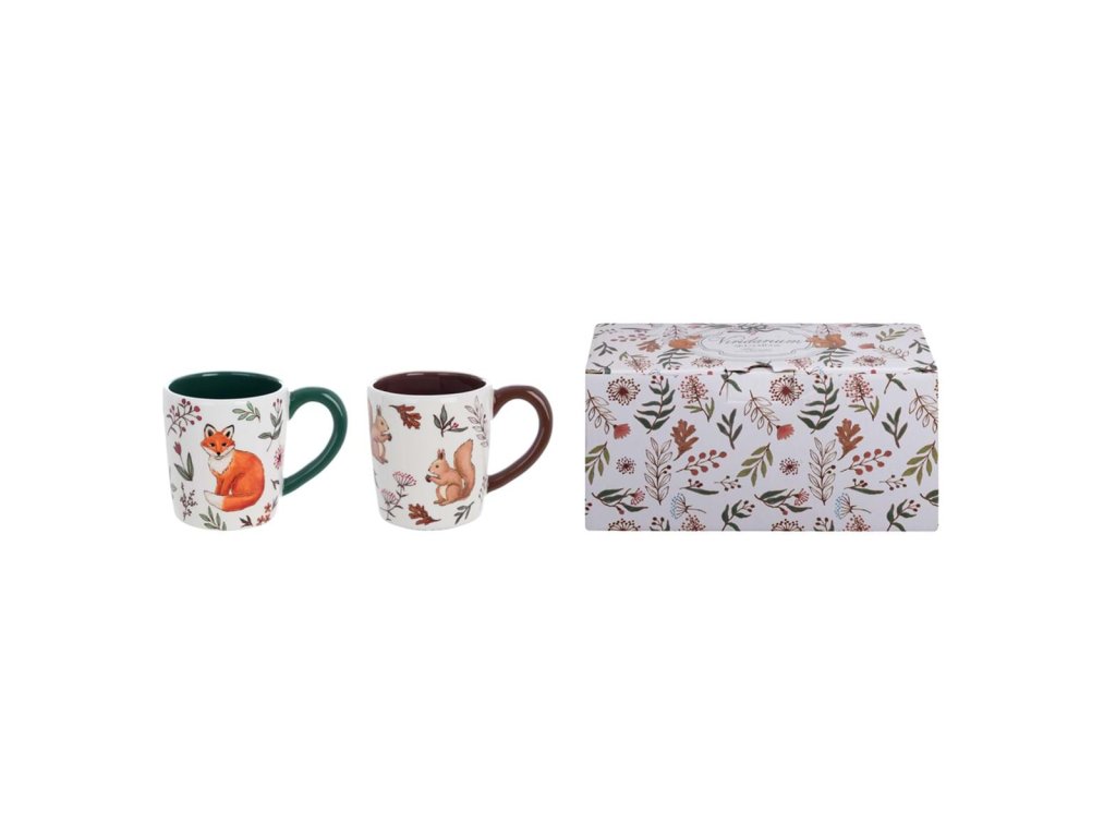 2er-Set Keramikbecher mit herbstlichem Tiermotiv - Blanc MariClo', 12×8×9 cm.