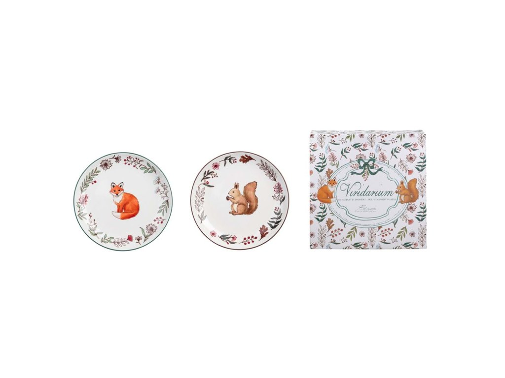 Keramischer Satz von 2 Tellern mit herbstlichem Tiermotiv - Blanc MariClo', 21×21×2 cm.