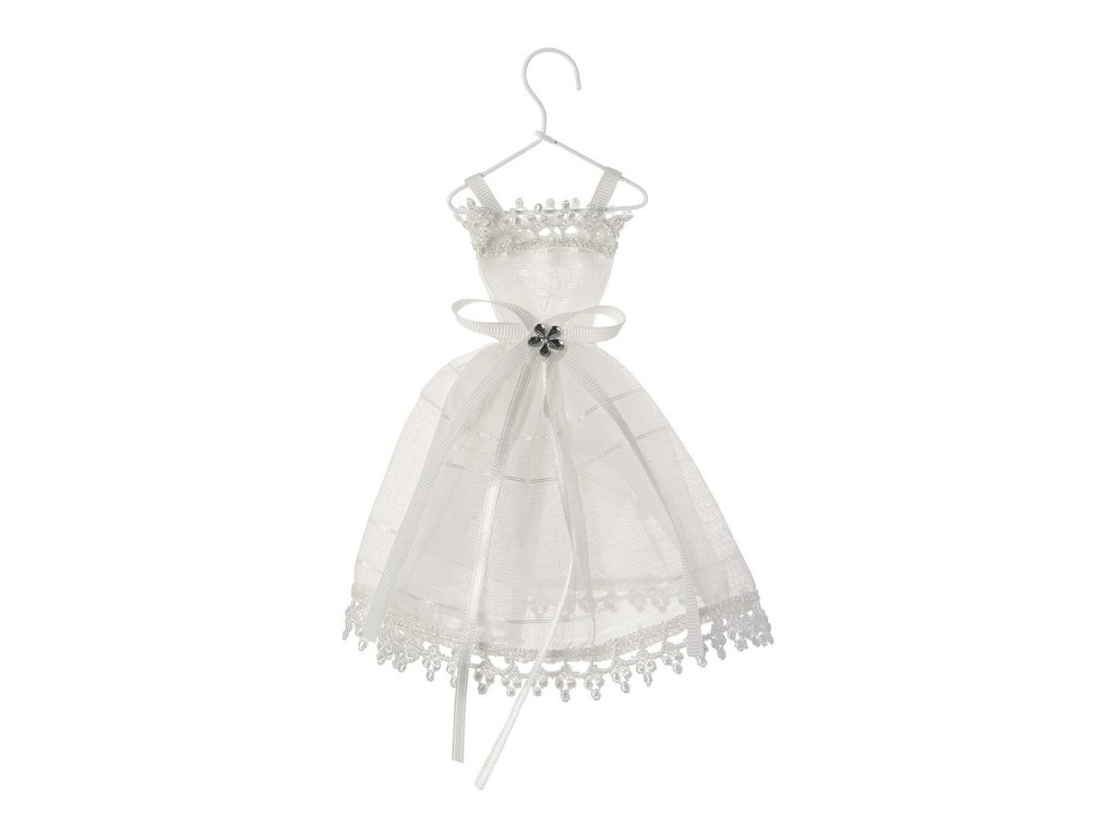 Dieses elegante Hochzeitskleid aus Spitze und Organza ist ideal für die Aufbewahrung von kleinen Duftdiffusoren (kleine Tasche unter dem Rock). Dank des Aufhängers können Sie sie in Ihrem Kleiderschrank aufhängen.