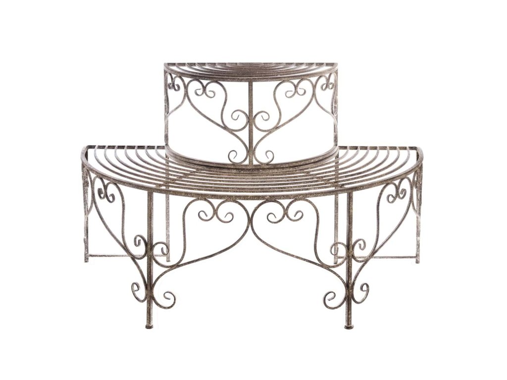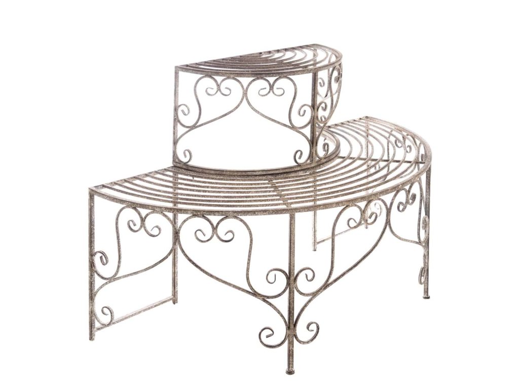 Pflanzkübel aus Metall mit einer Höhe von 60 cm und einer Breite von 90 cm, in eleganter halbrunder Form mit 2 Ebenen zum Aufstellen von Pflanzen. Dieses stilvolle und stabile Stück stammt aus derMemoriae und trägt die ursprüngliche Signatur der Marke Blanc Mariclò. Die feinen Metalldetails, der Vintage-Charakter und der praktische Nutzen machen den Etagere zu einer außergewöhnlichen Ergänzung für Innen- und Außenräume. Ideal für Liebhaber des romantischen, französischen und Shabby-Chic-Stils.