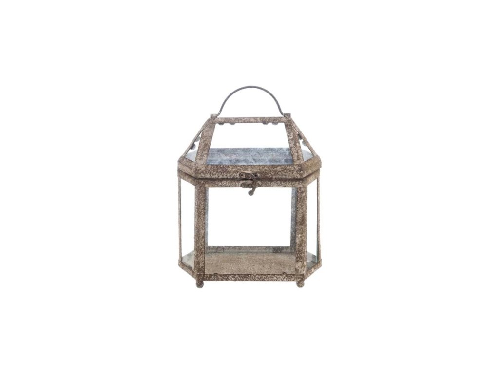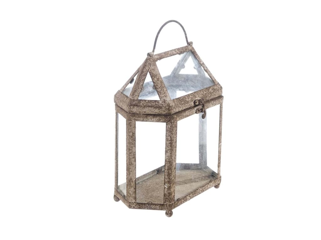 Kleine Laterne aus Metall mit Glas in antikem Design - Blanc Mariclo