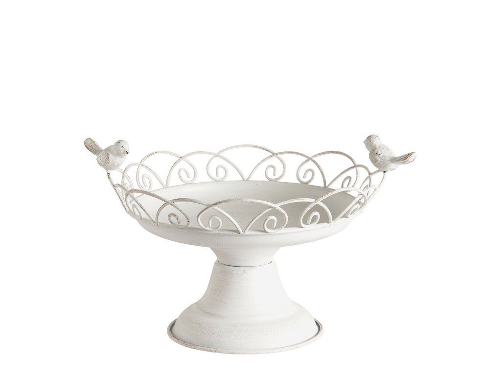 Lassen Sie sich von der zarten, poetischen Schönheit dieses eleganten runden Tabletts mit Vögeln auf einem Ständer verzaubern.