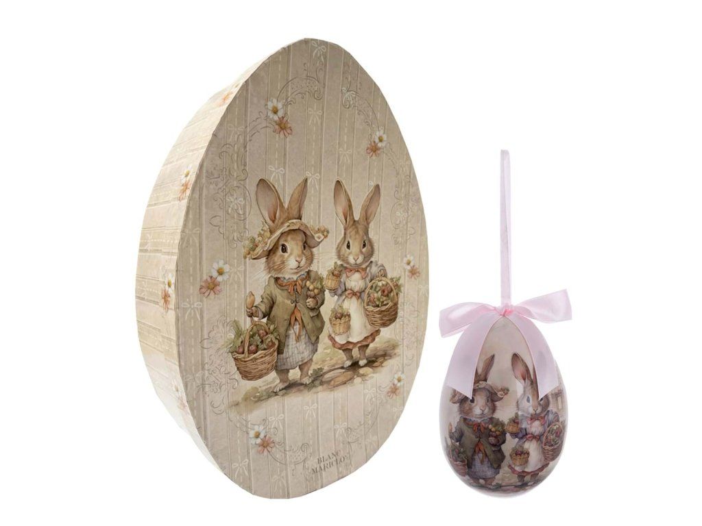 Die Uova Incantate Ostergeschenkbox enthält 8 dekorative Eier in zartem Rosa mit einem romantischen Motiv von zwei Hasen. Diese elegante Osterdekoration bringt eine sanfte Frühlingsatmosphäre und den typischen Blanc Mariclò-Stil in Ihre Einrichtung.