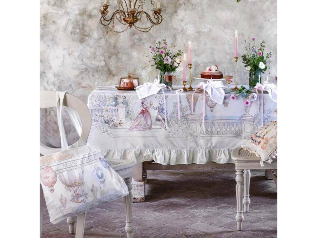 Das Design der Rokoko-Kollektion isthandbemalt und direkt in der Werkstatt von Blanc Mariclò entworfenwas sie zu einer originellen Autorenkollektion macht. Das Motiv wird dann auf Heimtextilien und Accessoires übertragen, die zusammen eine kohärente Kollektion bilden. Die Tischdecke ist besonders geeignet füressen zu Osterndank seines zarten und zeitlosen Designs eignet er sich aber auch für den ganzjährigen Einsatz in romantischen Innenräumen. Die typische Liebe zum Detail und zur Ästhetik ist charakteristisch für die toskanische MarkeWeißer Mariclò.