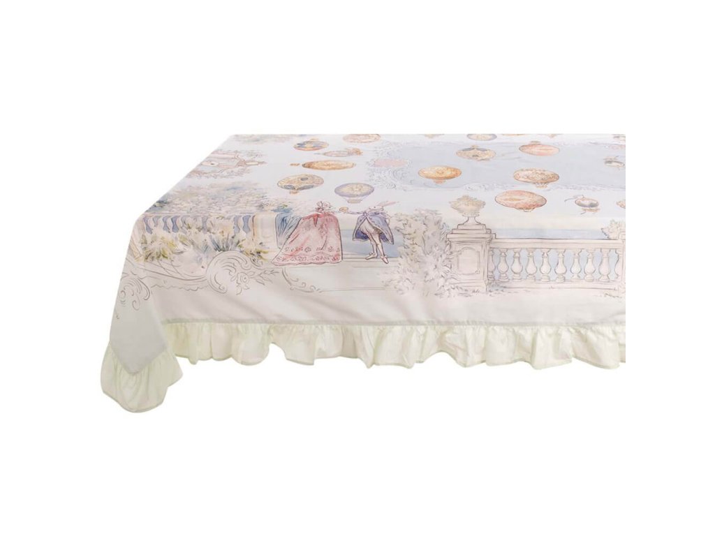 Baumwolltischdecke Rokoko 180 × 260 cm mit Rüsche 10cm - Blanc Mariclò