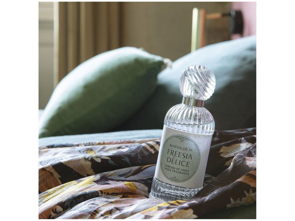Dieses Leinenparfüm von Les Intemporelles ist ein echter Dekorationsartikel, der Ihre Wäsche und alle Stoffe sanft parfümiert, ohne sie zu verschmutzen. Die Formel mit einer geringen Dosis Alkohol wurde speziell entwickelt, um alle Stoffe (Laken, Kissen, Vorhänge, Sofas oder Kleidung) zu schonen. In einem gerippten Glasflakon mit einem an ein Körperparfüm erinnernden Verschluss können Sie in wenigen Schritten einen Schleier aus duftender Zartheit auf Ihre Textilien legen.