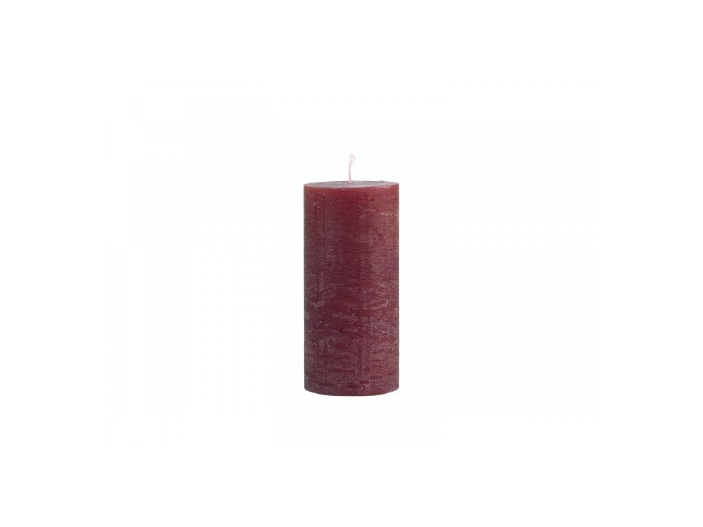 Rote Paraffinkerze im rustikalen Stil. Brenndauer 60 Stunden.