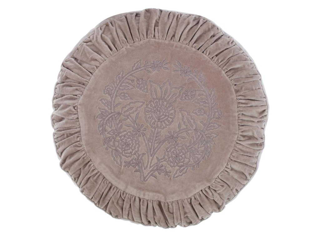 Romantisches rundes Kissen aus besticktem Samt mit Füllung.