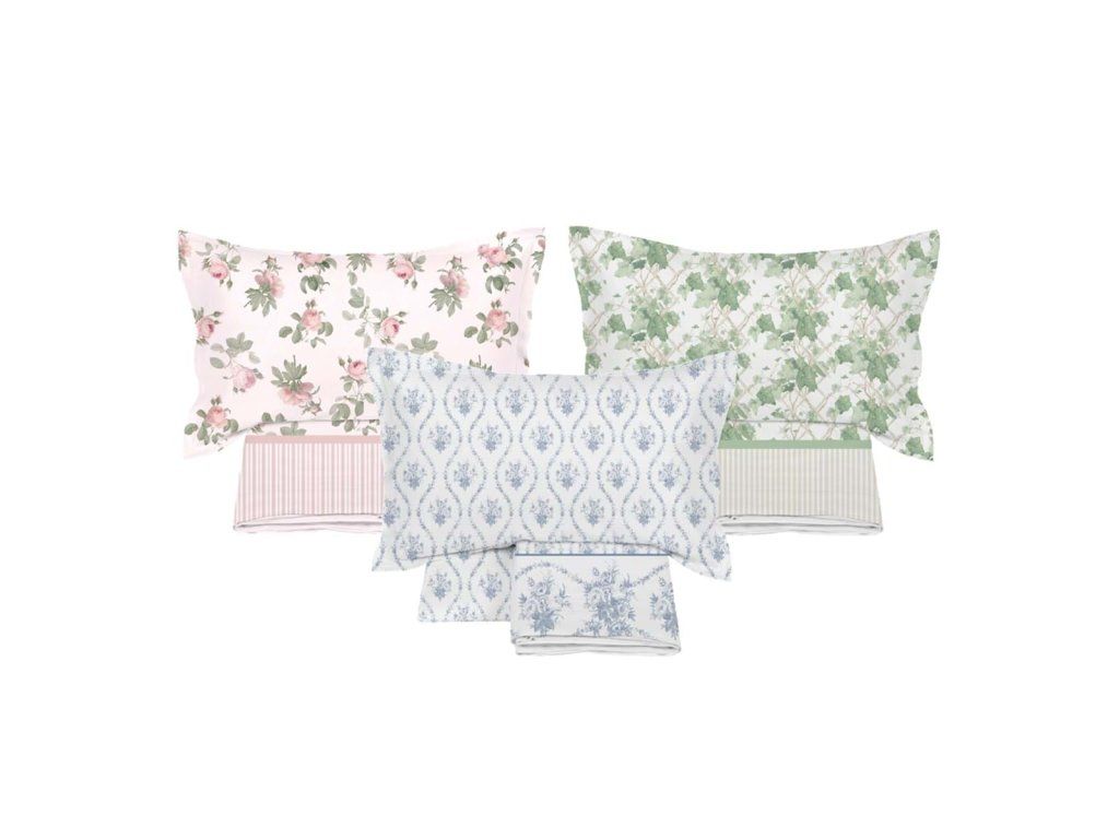 größe des Kissens: 250 × 240 cm - Größe des Kissens: 2 × 50 × 80 cm - Material: 100% Baumwolle - Muster: grüne Efeublätter und Streifen - Stil: romantisch / französisches Landleben - Verwendung: Schlafzimmer - Kollektion: EDERA ROSE - Hersteller: Blanc Mariclò