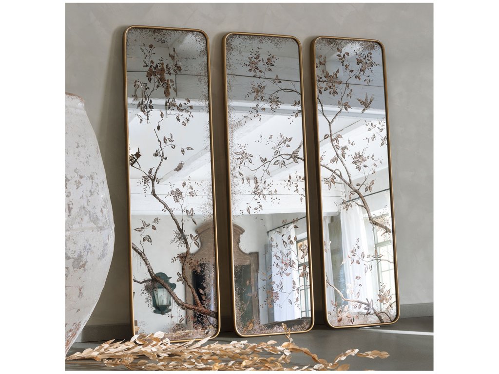 Dreiteiliger Spiegel mit Frühlingsmotiv aus japanischen Blumen.