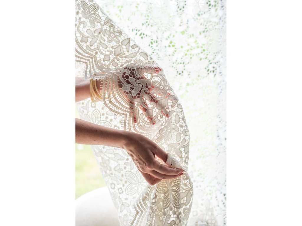 Romantischlanger Vorhang aus der Kollektion Villa delle Rose ist aus feinemitalienischer Spitzenstoff in reinem Weiß. Sie wirkt luftig, elegant und bringt Licht und Leichtigkeit in den Raum. Dank der Spitzenverarbeitung lässt sie das Tageslicht wunderbar durch und schafft eine zarte, romantische Atmosphäre.