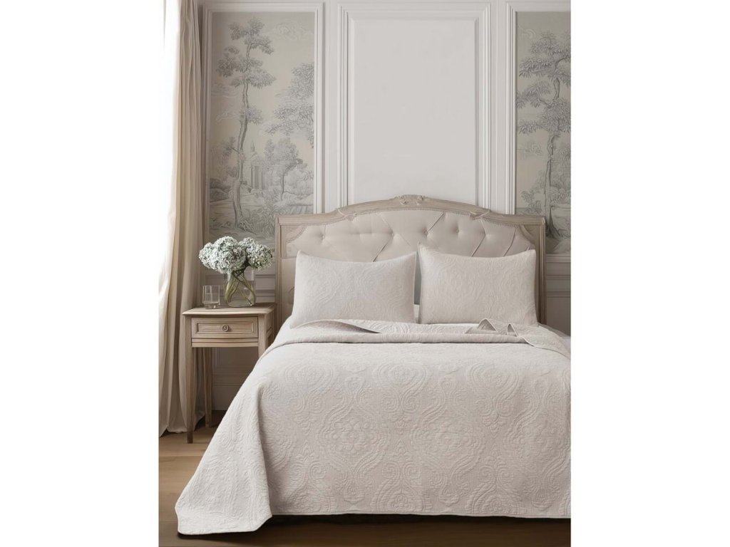 Der elegante gesteppte Bettbezug aus der Kollektion Ricamo di Cotone ist ein auffälliges Textil-Accessoire für das Schlafzimmer im Shabby-Chic- und Vintage-Stil. Die feine Steppung und das zeitlose Design verleihen dem Bettbezug einen eleganten und harmonischen Look, der eine gemütliche Atmosphäre im Haus schafft.