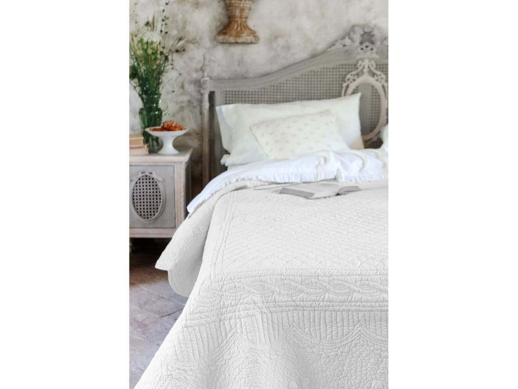 Steppdecke (Boutis) 250 × 260 cm mit dekorativem Rand - Sogno Toscano Kollektion, Blanc Mariclò