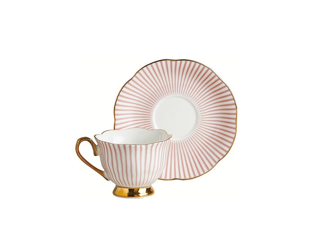Tasse und Untertasse aus Porzellan mit zartem Aufdruck. Nicht spülmaschinen- oder mikrowellengeeignet. 80cc Fassungsvermögen