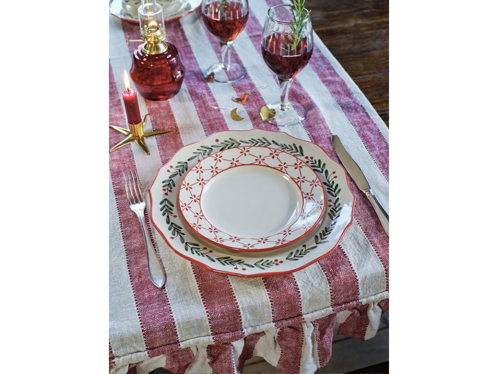 Ein poetischer Keramikteller, der ländlichen Charme, Vintage-Flair und nordischen Stil vereint. Dasteller Marion Kleegrün mit einem Durchmesser von 26 cm ist das Werk der schwedischen MarkeStrömshagabekannt für seine Liebe zum Detail und authentische Ästhetik. Die cremefarbene Glasur mit grünem Muster sieht zart und elegant aus und verleiht dem Essen einen Hauch von EleganzLa Maison Poetics.