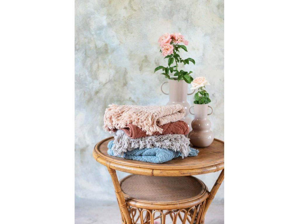 Der Badteppich mit Quasten aus der Kollektion Bagno in Villa in Rosa ist ein elegantes und praktisches Accessoire, das Ihrem Badezimmer einen warmen, natürlichen und harmonischen Look verleiht. Die Jacquard-Verarbeitung mit einer Dichte von 1300 GSM sorgt für hohe Weichheit, Saugfähigkeit und angenehmen Komfort bei jedem Schritt. Der 50 × 80 cm große Teppich aus 100 % Baumwolle eignet sich ideal für den Bereich vor der Badewanne, der Dusche oder dem Waschbecken. Die hochwertige Verarbeitung und die dekorativen Quasten verleihen dem ganzen Stück einen zeitlosen Charakter, der typisch für Blanc MariClo' ist.