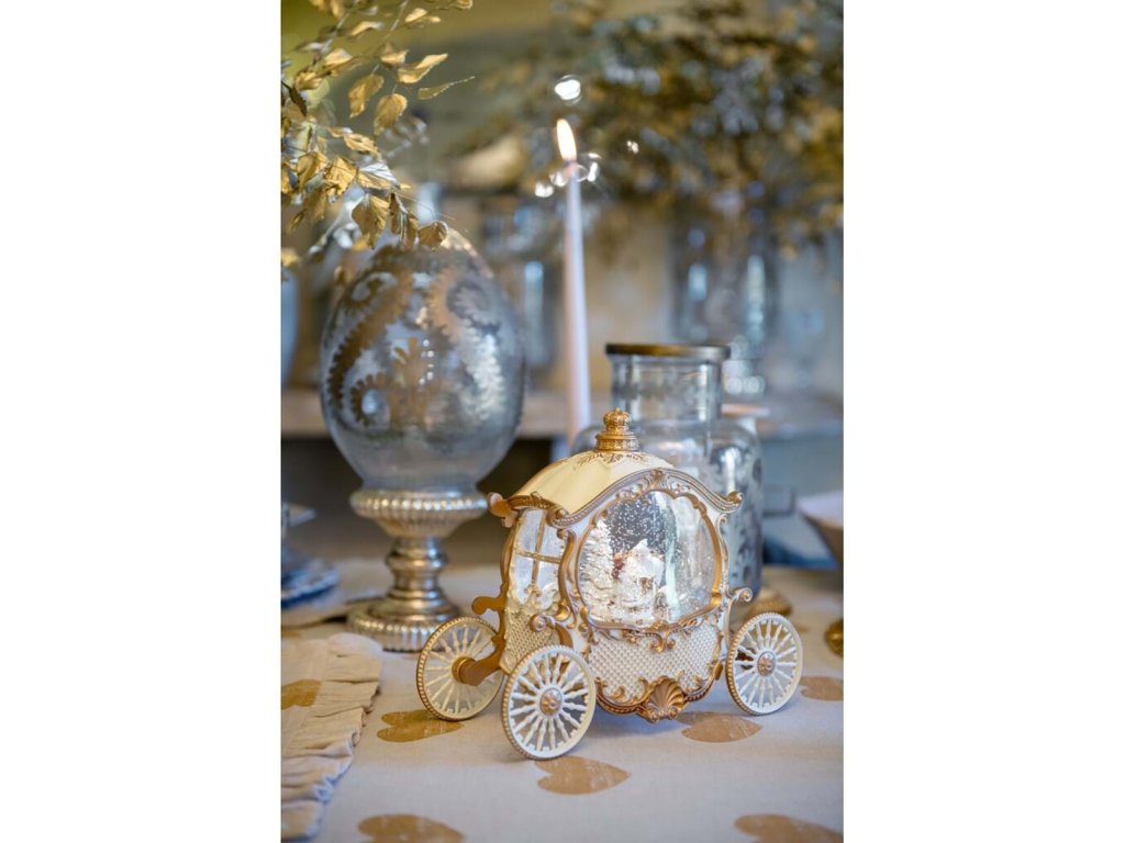 Luxusweihnachtswagen Dekoration mit Schneekugel und LED Beleuchtung von der italienischen MarkeBlanc Mariclo aus der SammlungDora ist von hoher Qualitätpolyresin, Glas und Wasser. Elegantweiß mit goldenen Details sieht fabelhaft und festlich aus. Wenn die Kugel geschüttelt wird, entsteht ein zarter Schneeeffekt, während dieLED-Licht verleiht der Dekoration eine magische Atmosphäre.