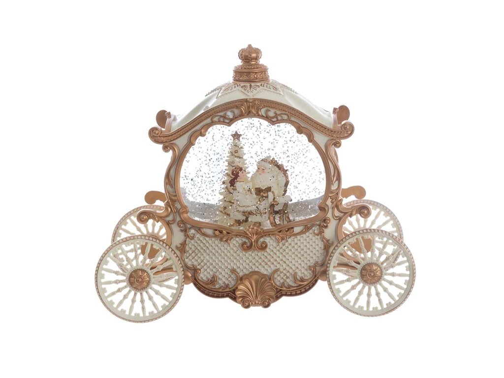 ✅Weihnachtsdekorationswagen mit Schneekugel ✅ LED-Beleuchtung - sanftes, festliches Licht ✅ Weiß mit goldenen Akzenten - elegantes Design ✅ Polyresin, Glas, Wasser - hochwertige Verarbeitung ✅ Kollektion Dora - Blanc Mariclo
