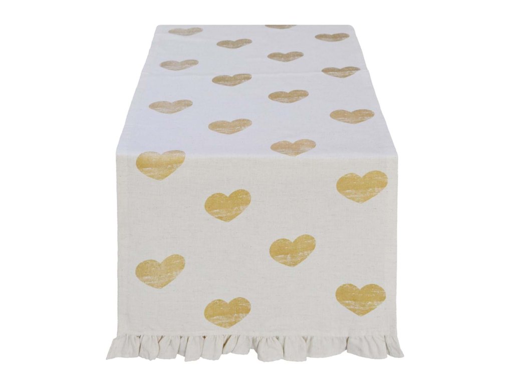 ✅Festlicher Baumwoll-Läufer mit Rüsche - gala 4 cm ✅ Bedruckte goldene Herzen - romantisches Detail ✅ Beige-goldene Farbkombination - eleganter Look ✅ Cuori Elite Kollektion - Blanc Mariclo ✅ Geeignet für Hochzeiten, Feste, Weihnachten und alltägliche Dekorationen