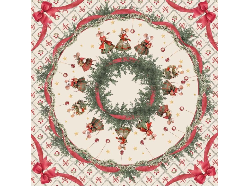 Weihnachtstischdecke Blanc Maricló - 100 × 100 cm, Kollektion Noel Famille, Motiv gemalte Mäuse
