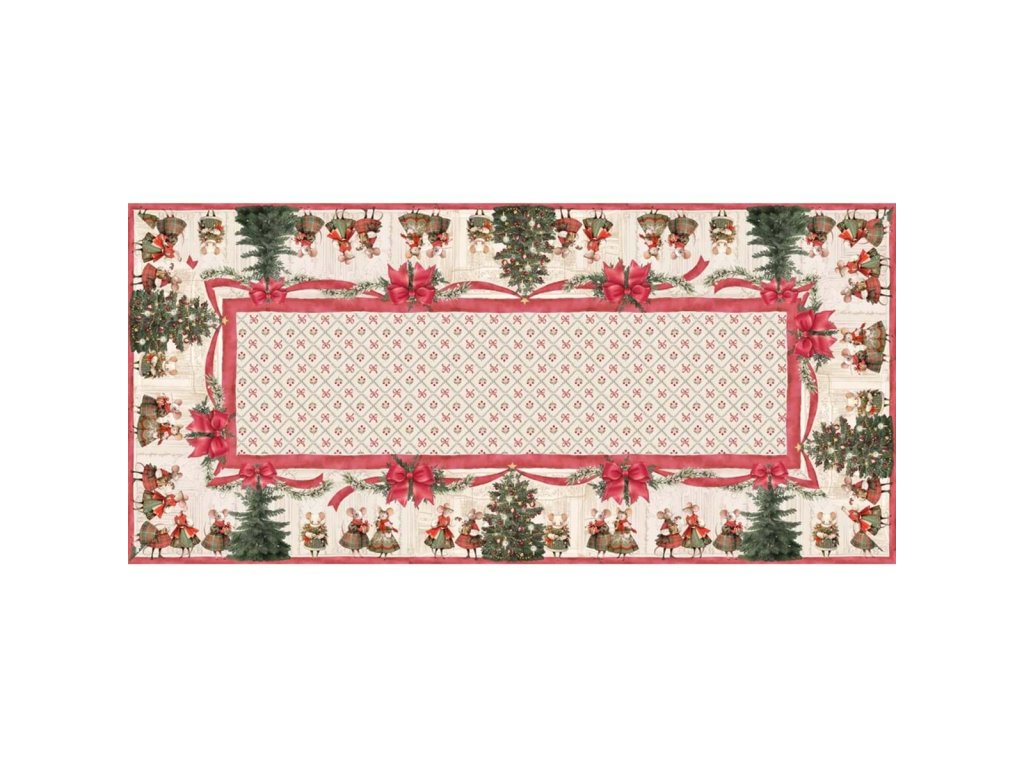 Weihnachtstischdecke Blanc Maricló - 150 × 320 cm, Kollektion Noel Famille, Motiv gemalte Mäuse
